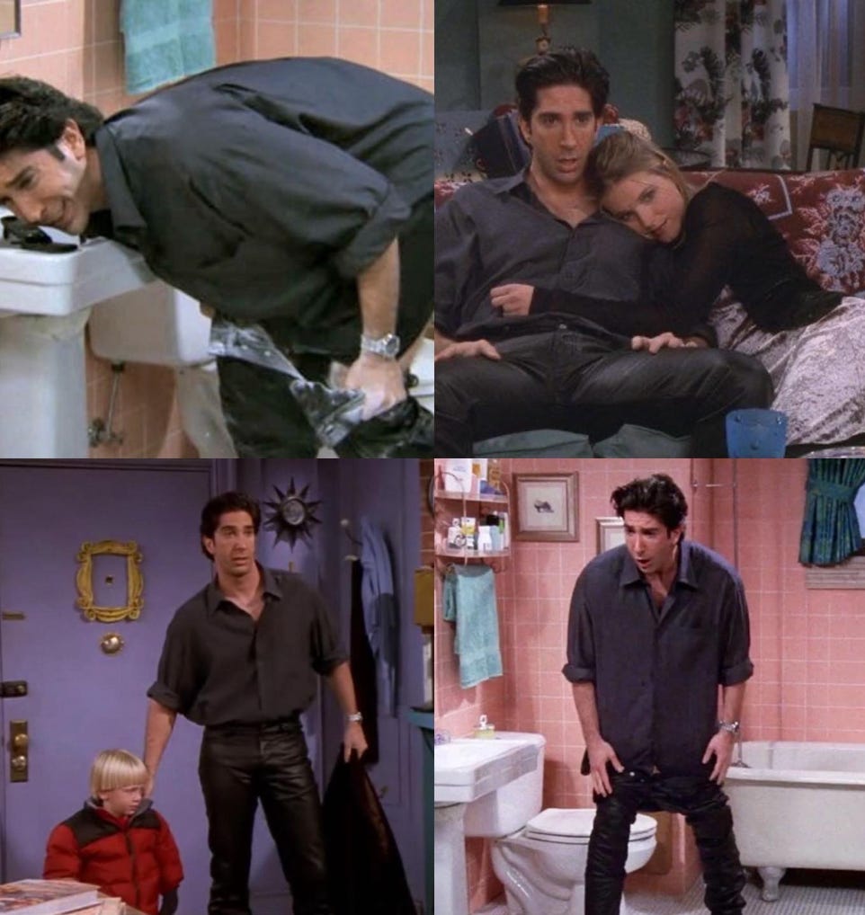 “You know in Friends,” Gail told me, “when Ross gets stuck in the bathroom because he has the leather pants on and he starts to sweat? And then he has to put the Vaseline on and then the baby powder and it forms a paste?”
