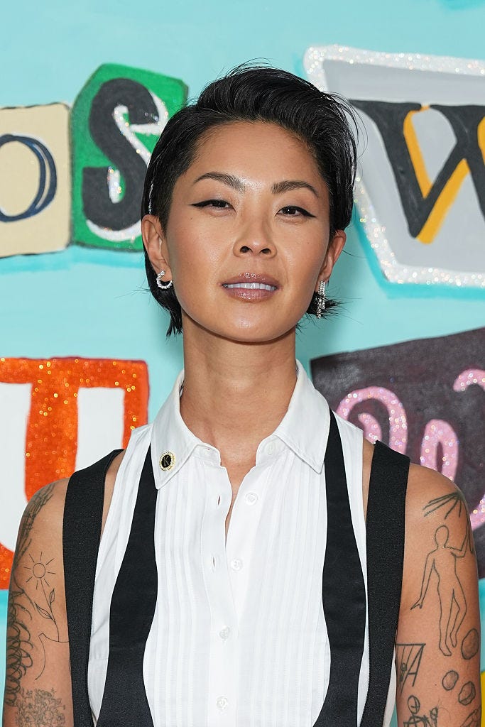 Kristen held out her right arm and pointed to the outline of a flower pot at an oblong angle. In it, a flower with petals that resembled sun rays. (You can spot the tattoo on her arm below, at a previous event).